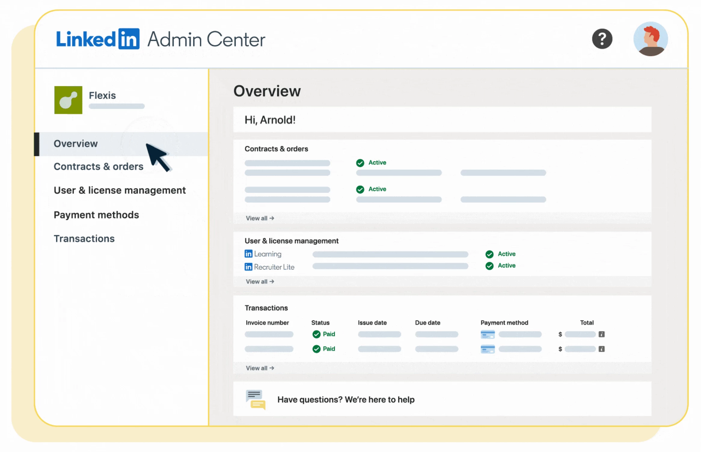 Manage billing, users, and permissions across LinkedIn products - all in one place