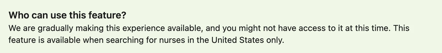 Now, when proactively searching for a Nurse in the United States, the following filters will appear: