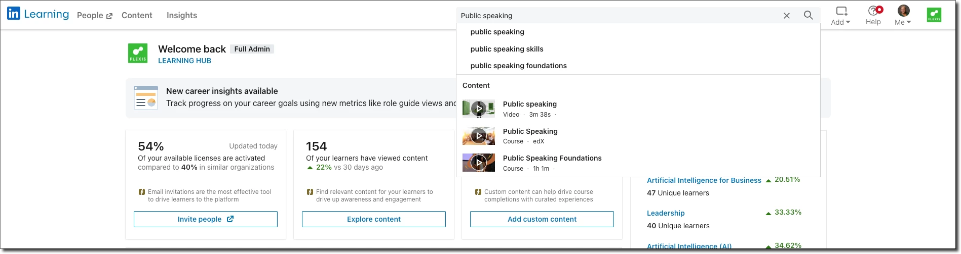LinkedIn Learning has a wide variety of courses, learning paths, and collection for admins to choose from. You can use Learning Management to find content that best suits the needs of your organization.